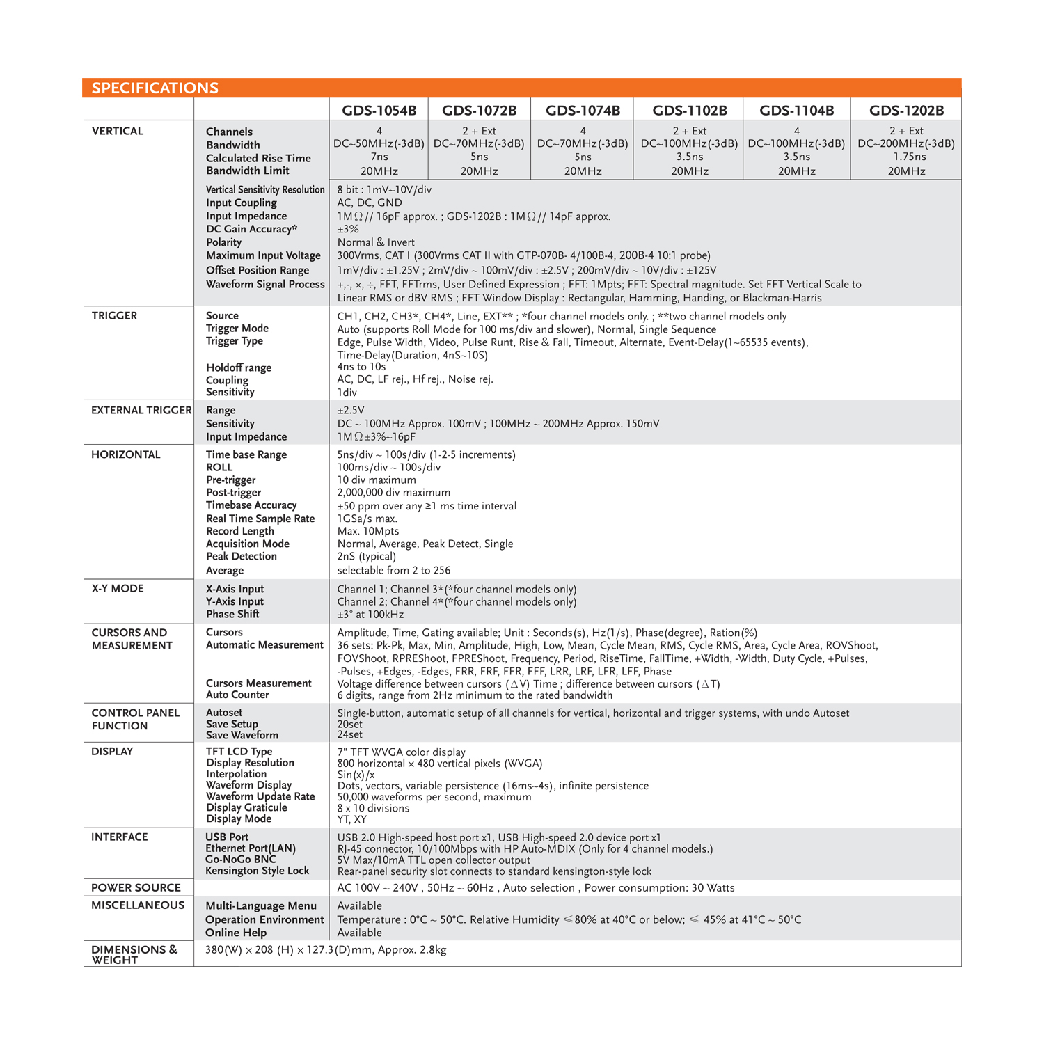 مشخصات نمایشگر اسکوپ GW-Instek GDS-1104B