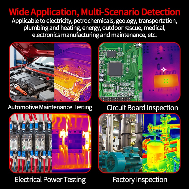 نمایشگر رنگی ۲٫۴ اینچی TFT این دستگاه، ترکیب تصویر حرارتی و مرئی را به صورت همزمان نمایش میدهد و با طیف های رنگی مختلف، تحلیل دقیقتری از وضعیت حرارتی ارائه میدهد. این مزیت برای تکنسینها در زمینه HVAC، تعمیر تجهیزات صنعتی و نگهداری پیشگیرانه بسیار کارآمد است.