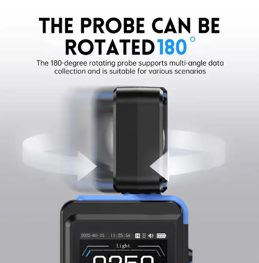 این نورسنج حرفهای با پشتیبانی از دو واحد لوکس (Lux) و فوتکاندلا (FC)، ابزاری دقیق برای اندازهگیری شدت نور در محیطهای مختلف است. سنسور قابل چرخش 180 درجه، نمایشگر رنگی 2 اینچی HD و قابلیت مانیتورینگ لحظهای همراه با رسم نمودار، آن را به گزینهای ایدهآل برای مهندسان، تکنسینها و حتی عکاسان تبدیل کرده است.