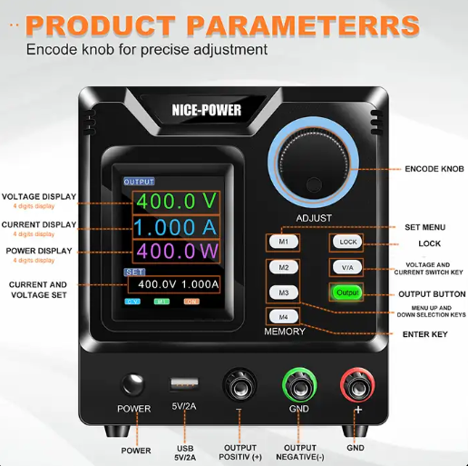 اگر به دنبال یک منبع تغذیه بسیار دقیق با ولتاژ قابل تنظیم تا 400 ولت هستید، منبع تغذیه نایس پاور Nice-Power SPPS-D4001 یکی از بهترین گزینهها برای شماست. منبع تغذیه SPPS D4001 قابلیت تنظیم ولتاژ در بازه 400 ~ 0 ولت و جریان تا 1 آمپر را با رزولوشن بسیار بالا و نمایشگر دقیق برای شما فراهم میکند.