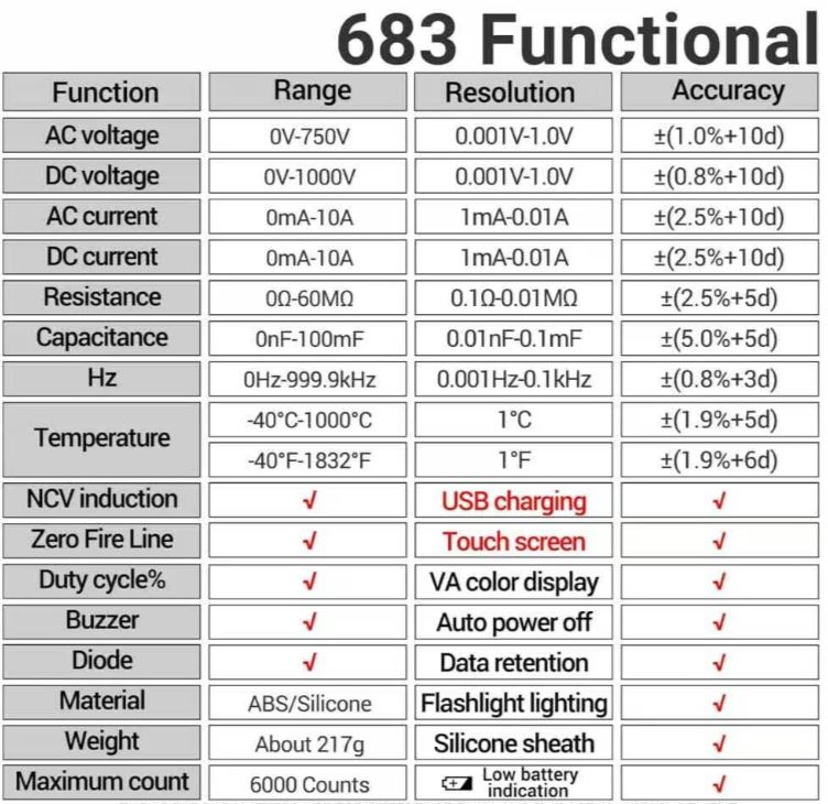 • امکانات تست دیود، تست NCV و قابلیت Data Hold