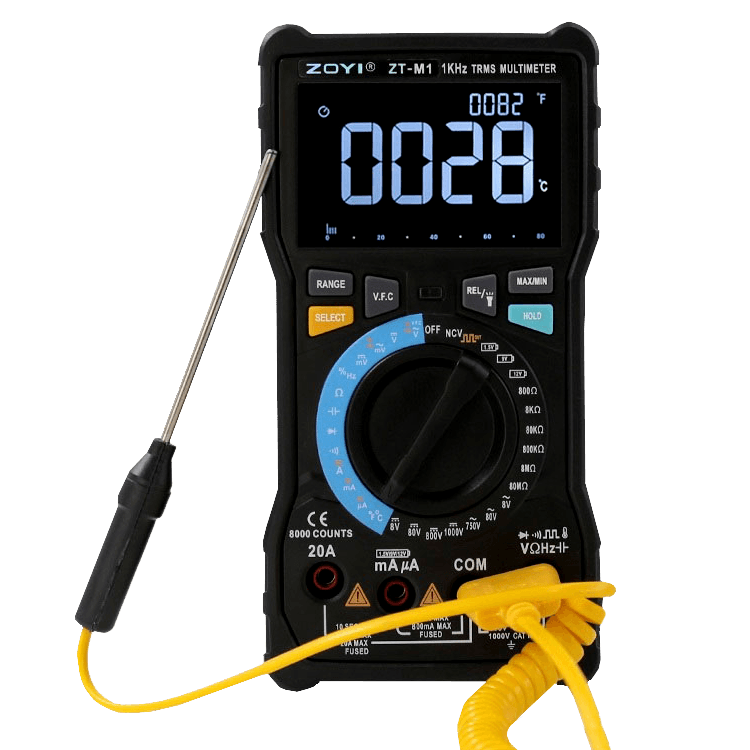 مولتی متری که شاهد آن هستید با نام تجاری ZOYI مدل ZT-M1 با طراحی و کیفیتی متفاوت و قابلیتهای منحصر به فرد از رقبای خود پیشی گرفته است. این مولتی متر خاص دارای دو رنج دستی و اتومات کاملا مجزا میباشد.